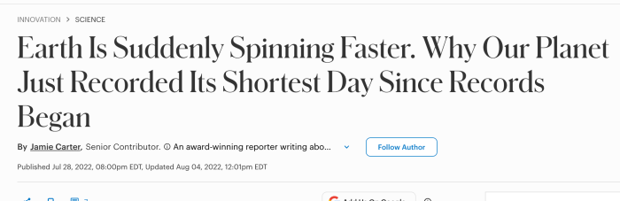 I never had a chance to ask the guy if the earth was spinning faster or slower because of “climate change”.