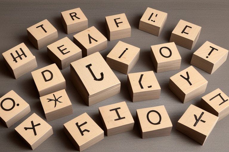 A lot of kids have alphabet blocks. Twenty six wooden squares with the letters of the alphabet on them.