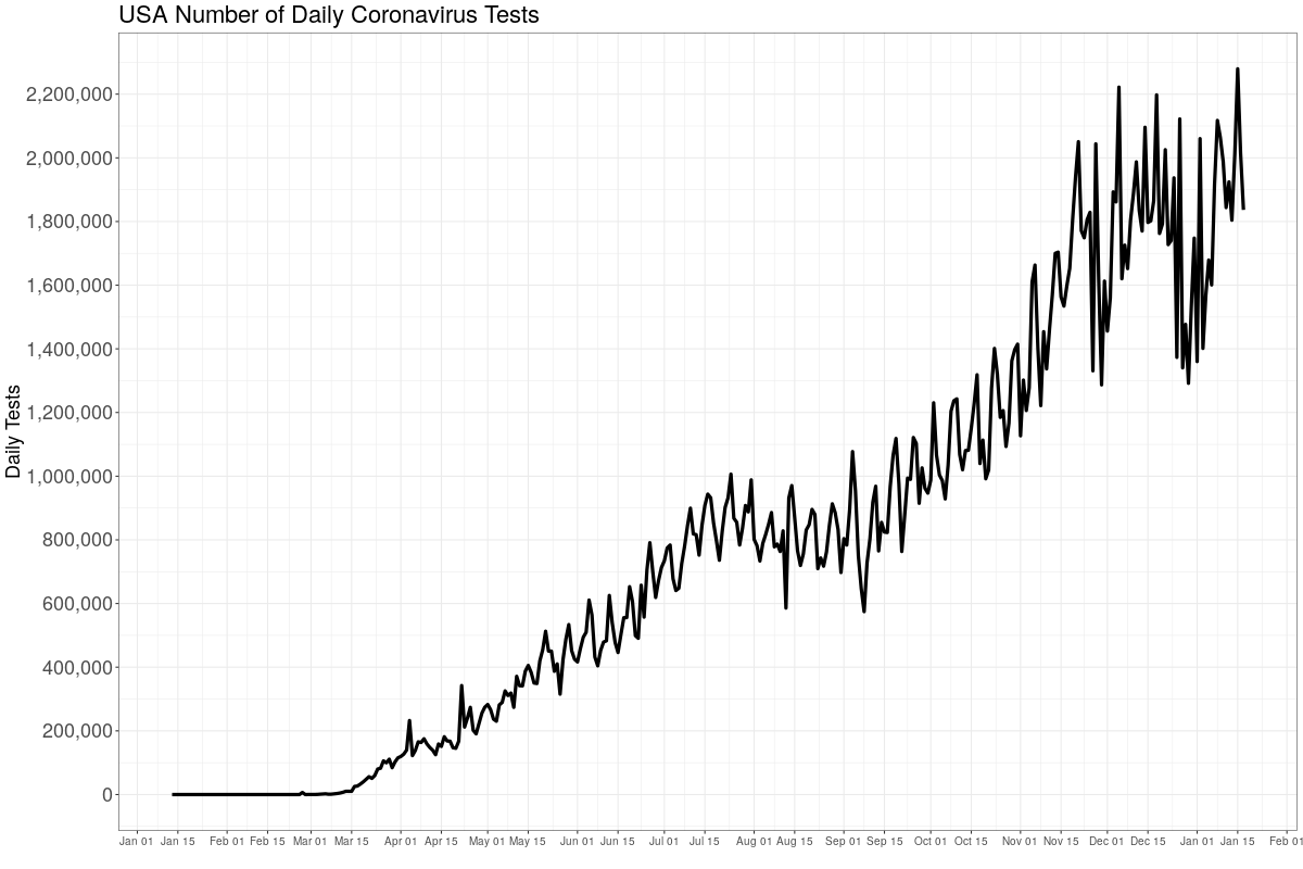 Testing has peaked back up after the holidays, as expected. After "Death is coming" is inaugurated, it's likely to go higher still. Testing helps sustain the panic, because of all the false reporting on "cases". Flu is still missing, even into 2021. CDC found one pediatric death for flu this season. Here is the WHO's global flu tracker, which still shows flu has gone missing everywhere:
