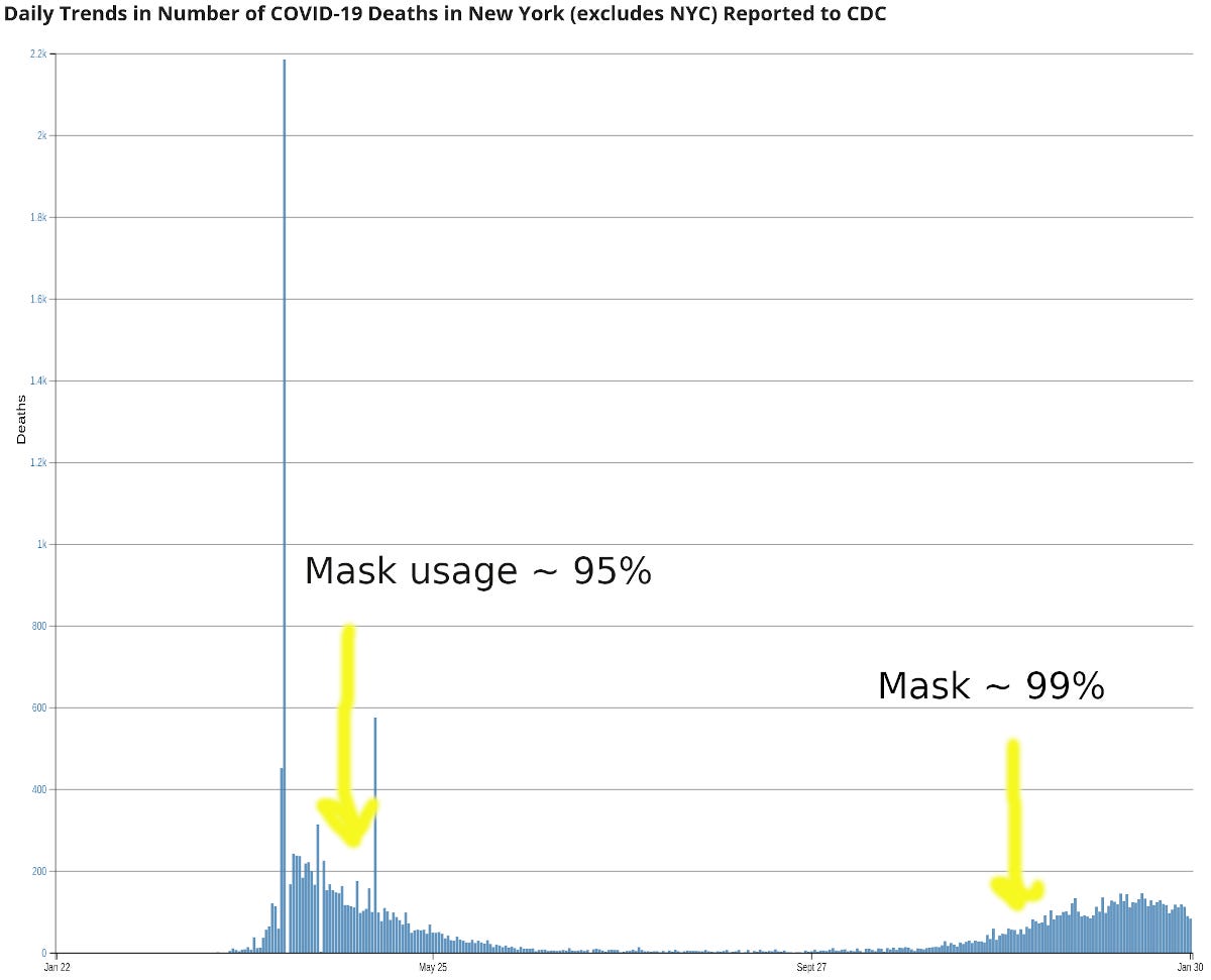 Well, this is a great scientific discovery, that closed restaurants cause coroandoom deaths! Because masks work, masks work, a scientific conclusion. So the deaths had to have another cause. Somehow, something about the closed restaurants seeped through the masks, and started killing people in earnest.