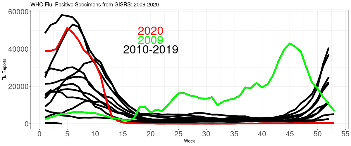 The black line at the bottom far left is 2021. Flu is still gone the whole world over. Leading us to suspect some COVID deaths are really flu+pneumonia.