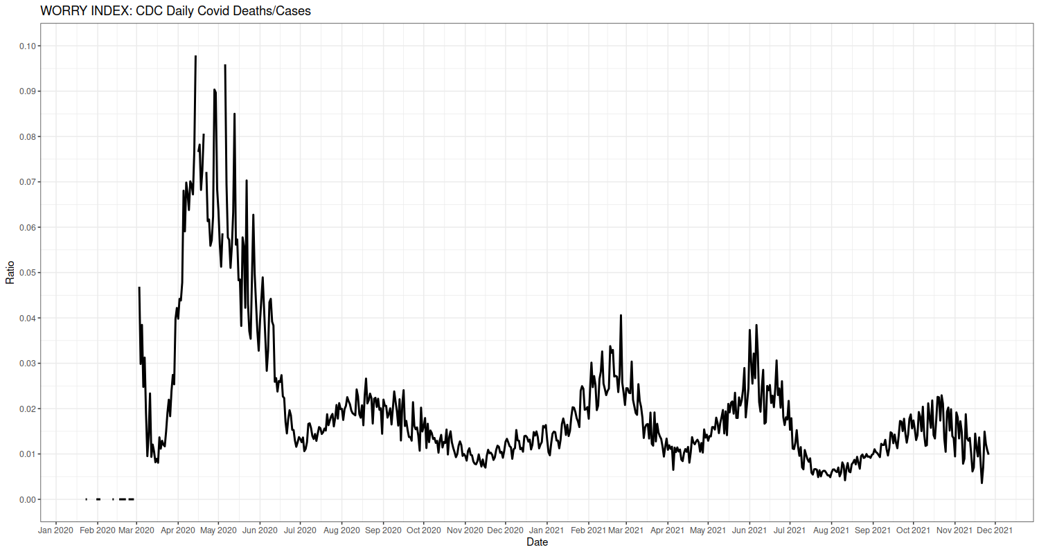 I call this next one the Worry Index. This is the daily attributed doom deaths by daily "cases".