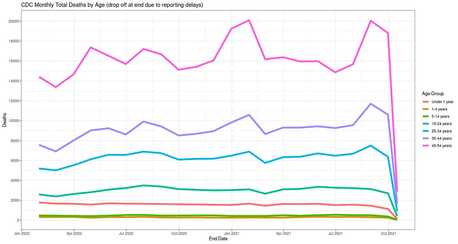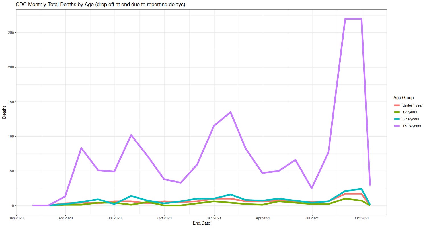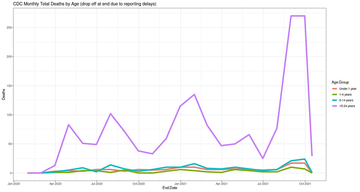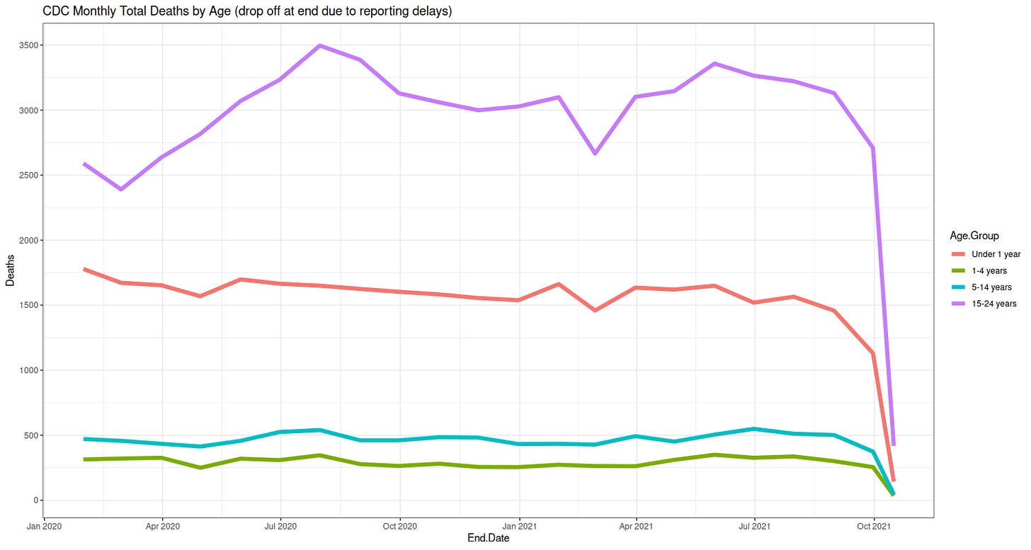 Again, remind yourself of the all-caused deaths for everybody younger than 15. A general decrease, or holding steady. No signal of any kind.