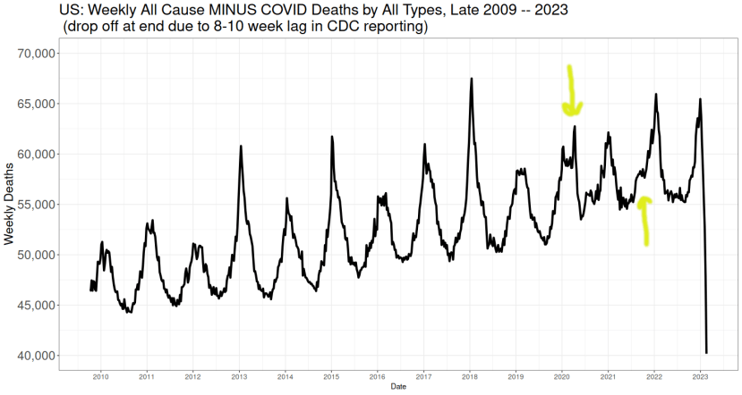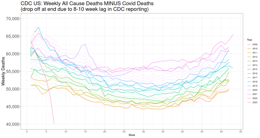 I would imagine that GIGO applies here. Who says we can trust the data from the CDC? It would not be to their benefit (cui bono?) to provide accurate information if it would reflect poorly on them, or the US government at large. Every attempt to demonstrate the vaccines may have caused excess deaths always requires “estimating overcounted COVID deaths” or some other data massage since the CDC didn’t do that work themselves. Therefore, all analysis can be dismissed because of “excess manipulation” or other “inaccuracies”. That VAERS reporting of death and adverse side effects coincident with vaccination isn’t enough to trigger an investigation is all the data I need.