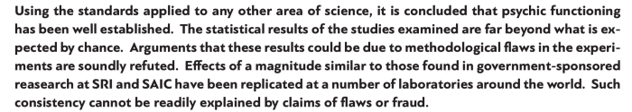 Jessica Utts writes in a peer-reviewed paper “An Assessment of the Evidence for Psychic Functioning” this: