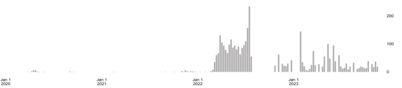 The next peak in deaths is those with 4 shots (and not any other number), in July 2022. That was the month with the largest officially ascribed covid deaths in NZ. Very few people with other shot quantities died during that month. And the same kind of thing, as you can see, happened with those with 5+ shot in May 2022, which was also a minor high in officially ascribed covid deaths.