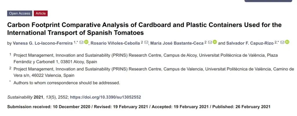 cardboard: “Carbon footprint comparative analysis of cardboard and plastic containers used for the international transport of Spanish Tomatoes”