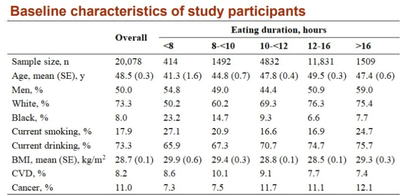 “We were surprised to find that people who followed an 8-hour, time-restricted eating schedule were more likely to die from cardiovascular disease. Even though this type of diet has been popular due to its potential short-term benefits, our research clearly shows that, compared with a typical eating time range of 12-16 hours per day, a shorter eating duration was not associated with living longer,” Zhong said.