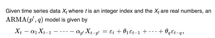 Because of pure laziness, I steal math for the ARMA model from Wokepedia (all ARIMA models become ARMA models after differencing: see the video).