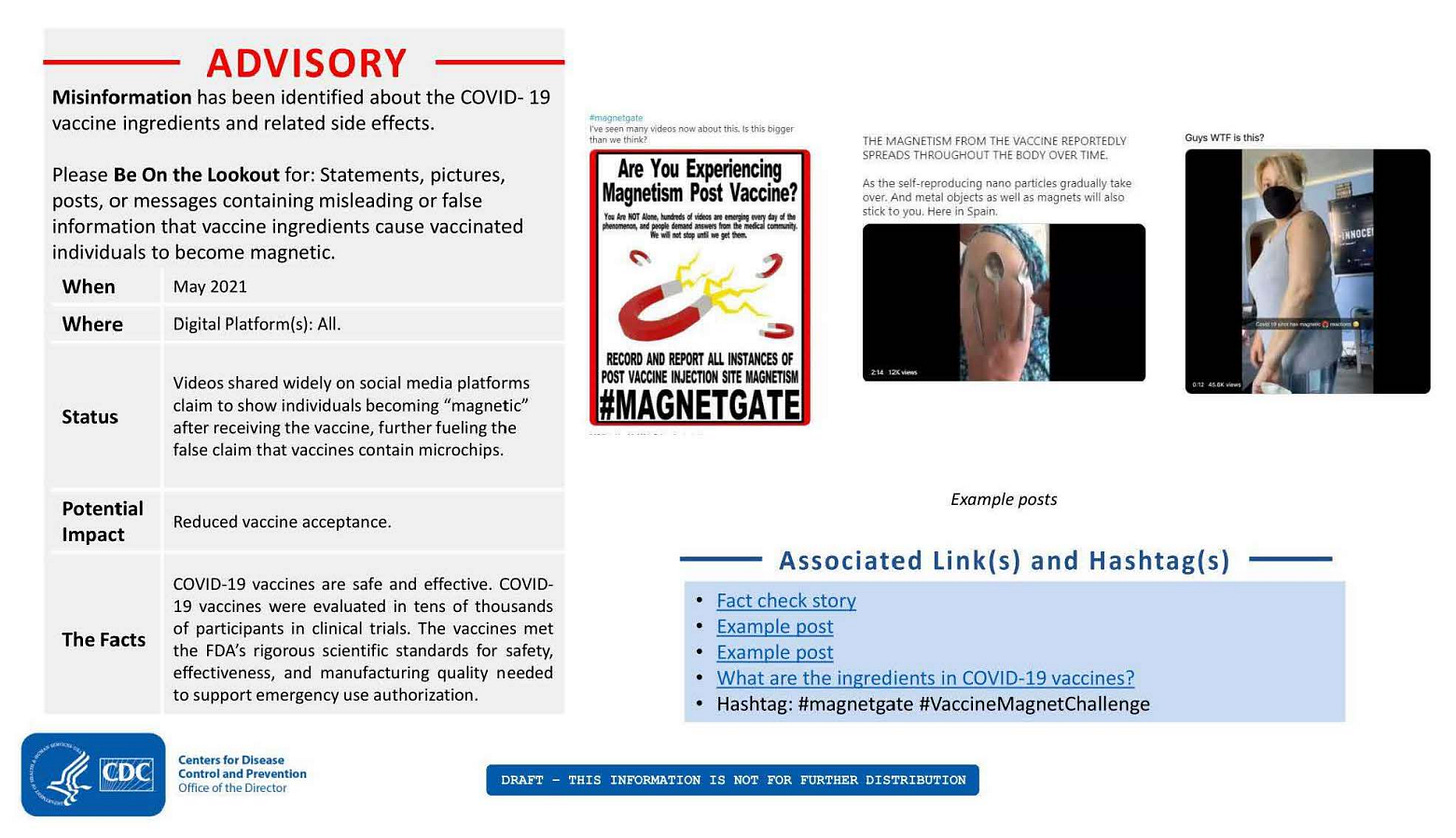 Turns out there exist emails from the CDC to Twitter, Facebook, and Google, that state a set of Official Truths, and "suggestions" on how these corporations should deal with them. Rather, how the companies should deal with people who are caught speaking against Official Truths.