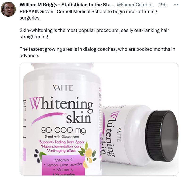 Subscribe or donate to support this site and its wholly independent host using credit card click here. Or use the paid subscription here. Cash App: $WilliamMBriggs. For Zelle, use my email: matt@wmbriggs.com, and please include yours so I know who to thank.