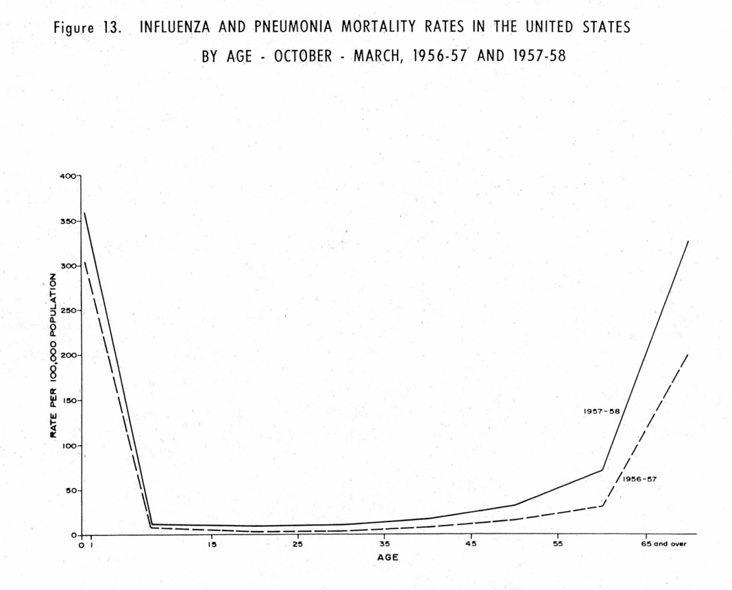 Let's take the 1957-1958 Asian (the novel H2N2) flu, the worst of the last century after the Spanish flu. I pick this instead of the Spanish flu because the medical and social circumstances after WWI were very different by mid century.